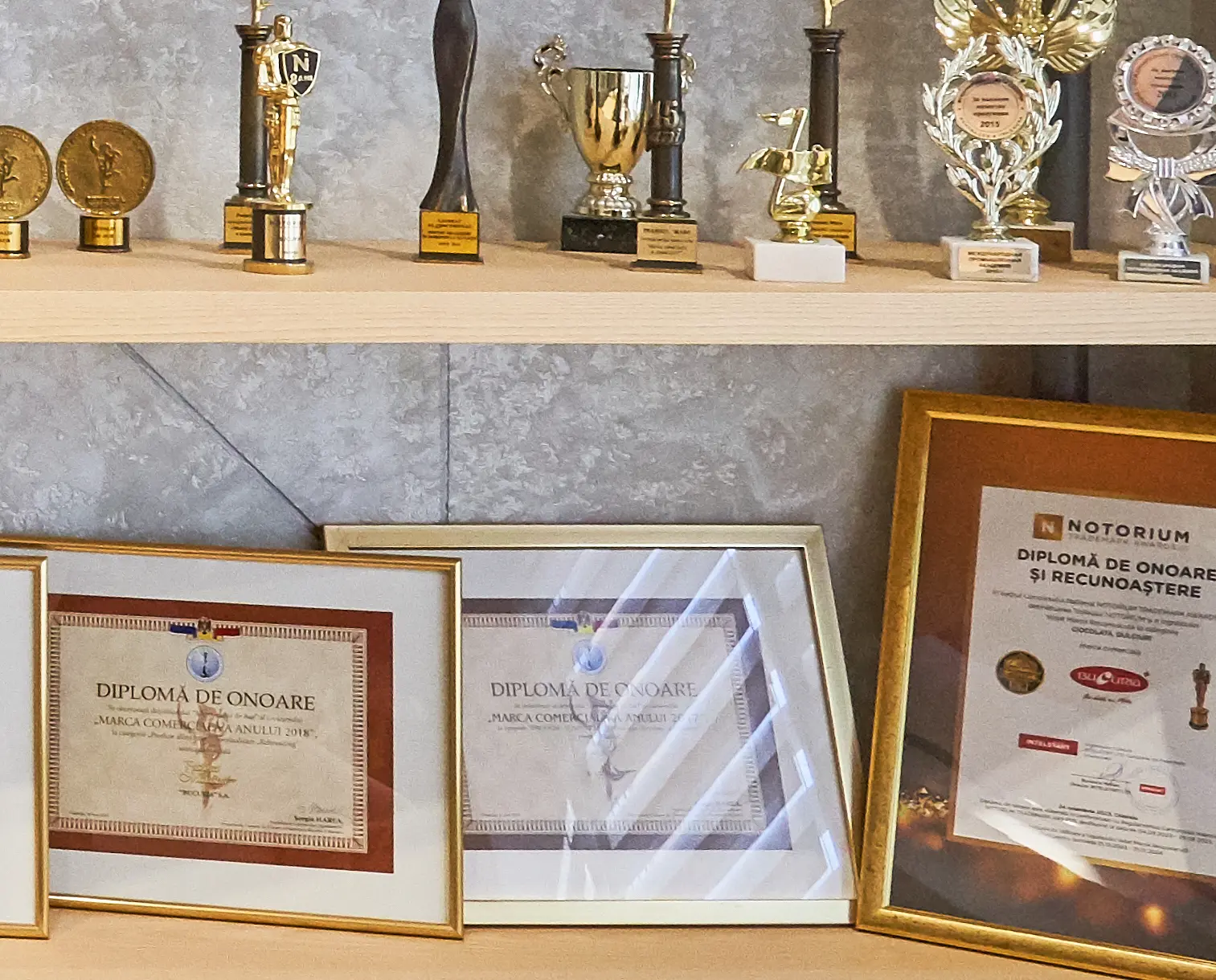АО "Bucuria" сертифицирована по международным стандартам ISO 9001 и ISO 22000. Качество и безопасность продукции контролируется на всех этапах производства продукта — от закупки сырья до конечного покупателя.