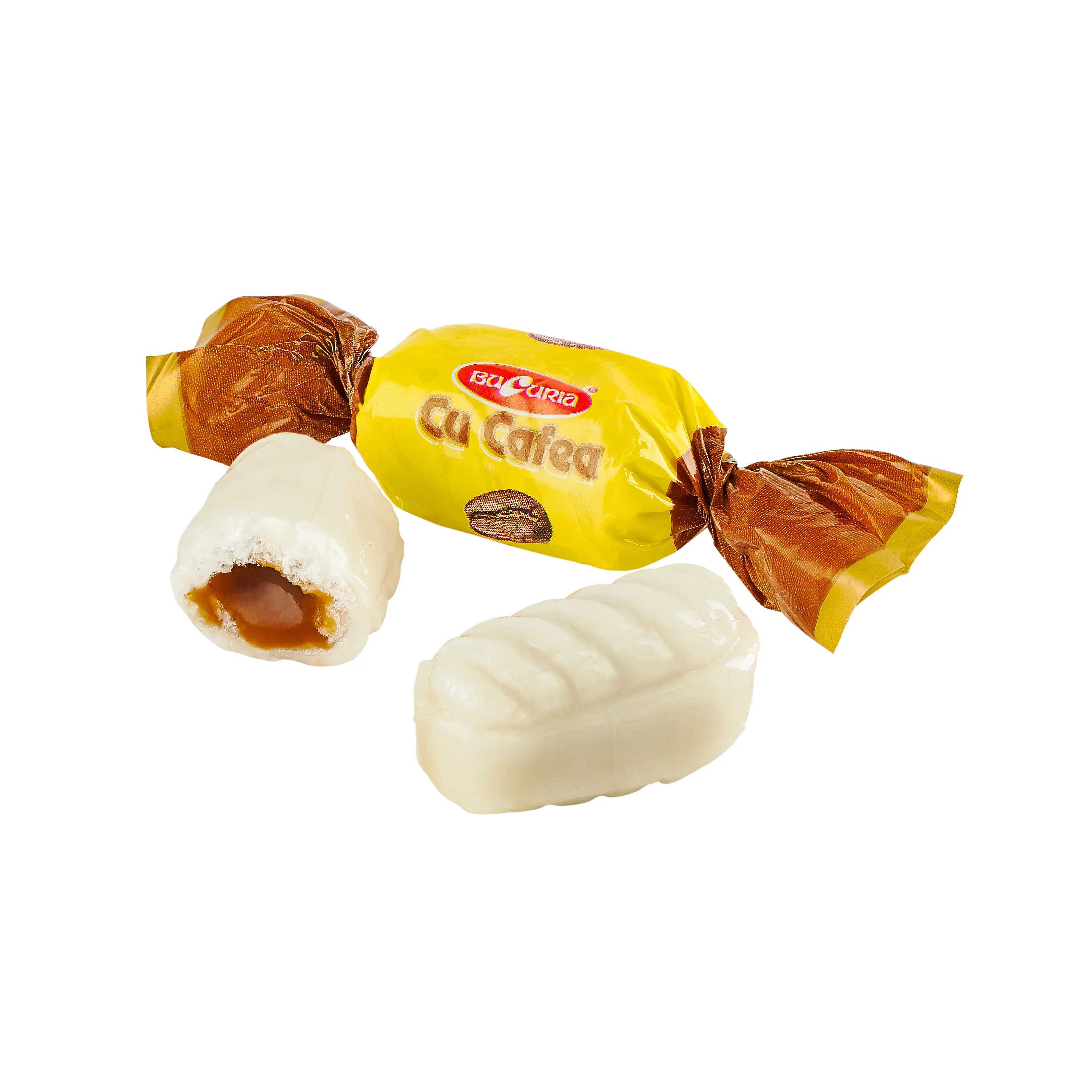 Карамель с молочной начинкой и добавлением натурального кофе.