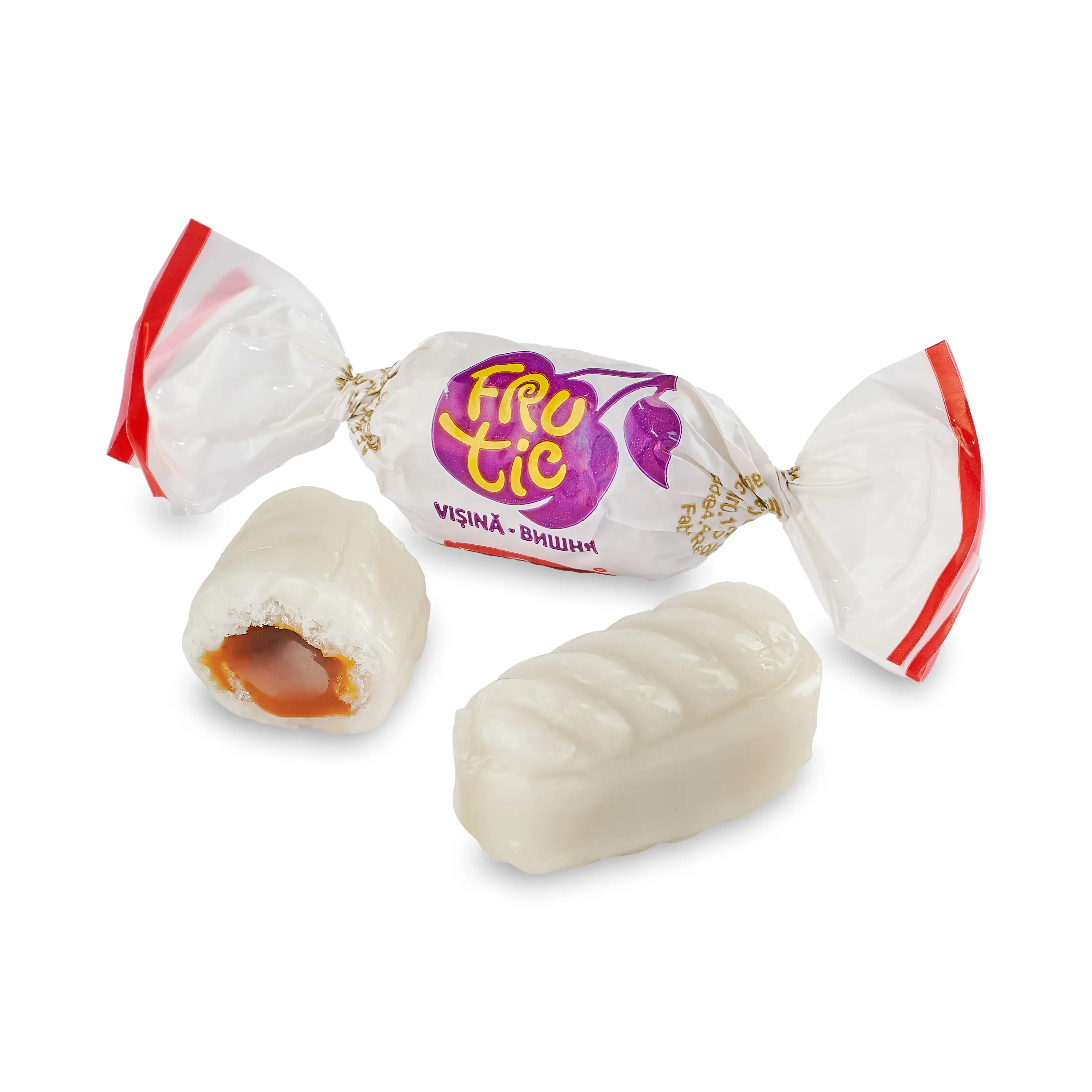 Карамель с фруктовой начинкой и добавлением вишнёвого сока.