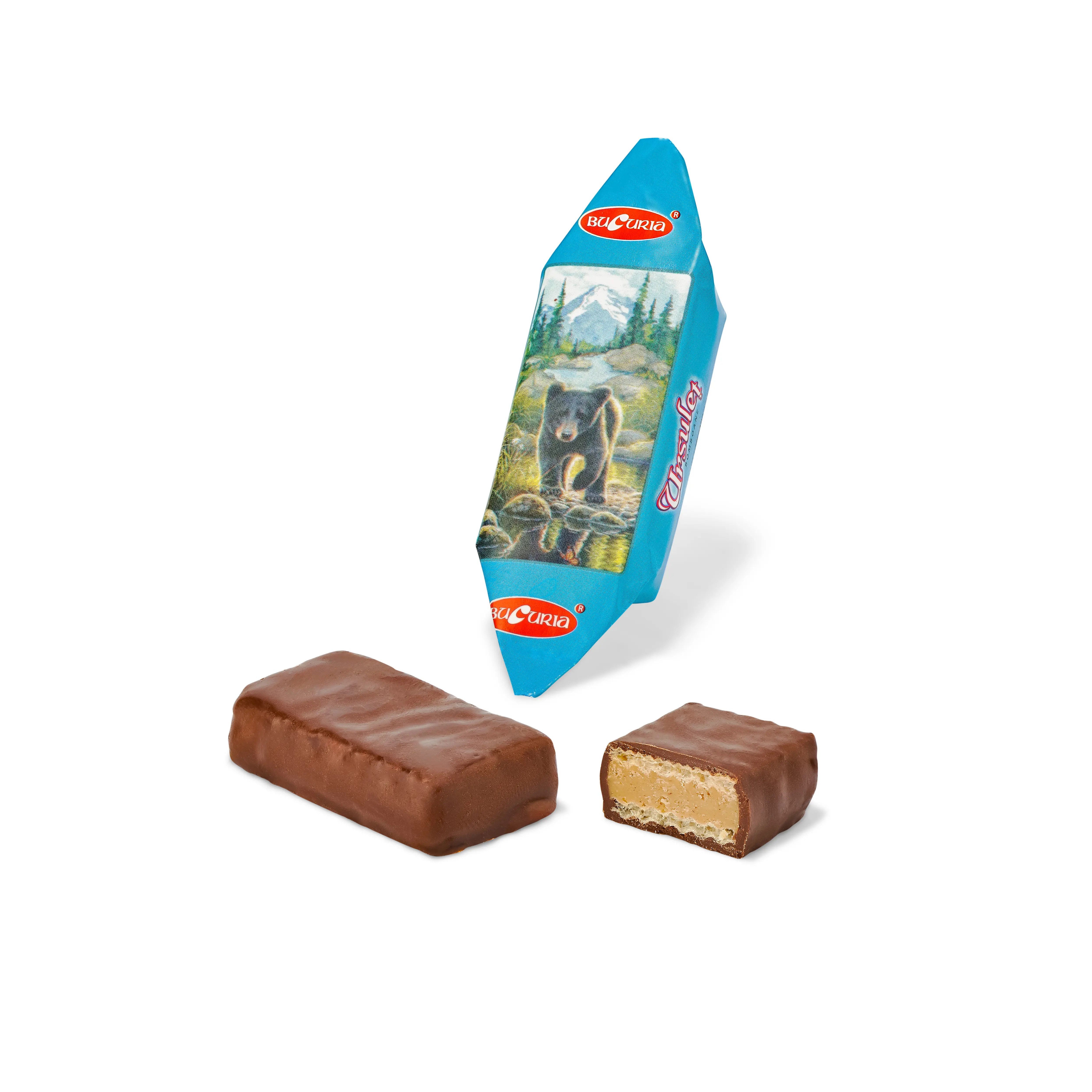 Конфеты с начинкой на основе жаренного миндаля в сахаре между двумя вафельными листами, глазированные шоколадной глазурью.