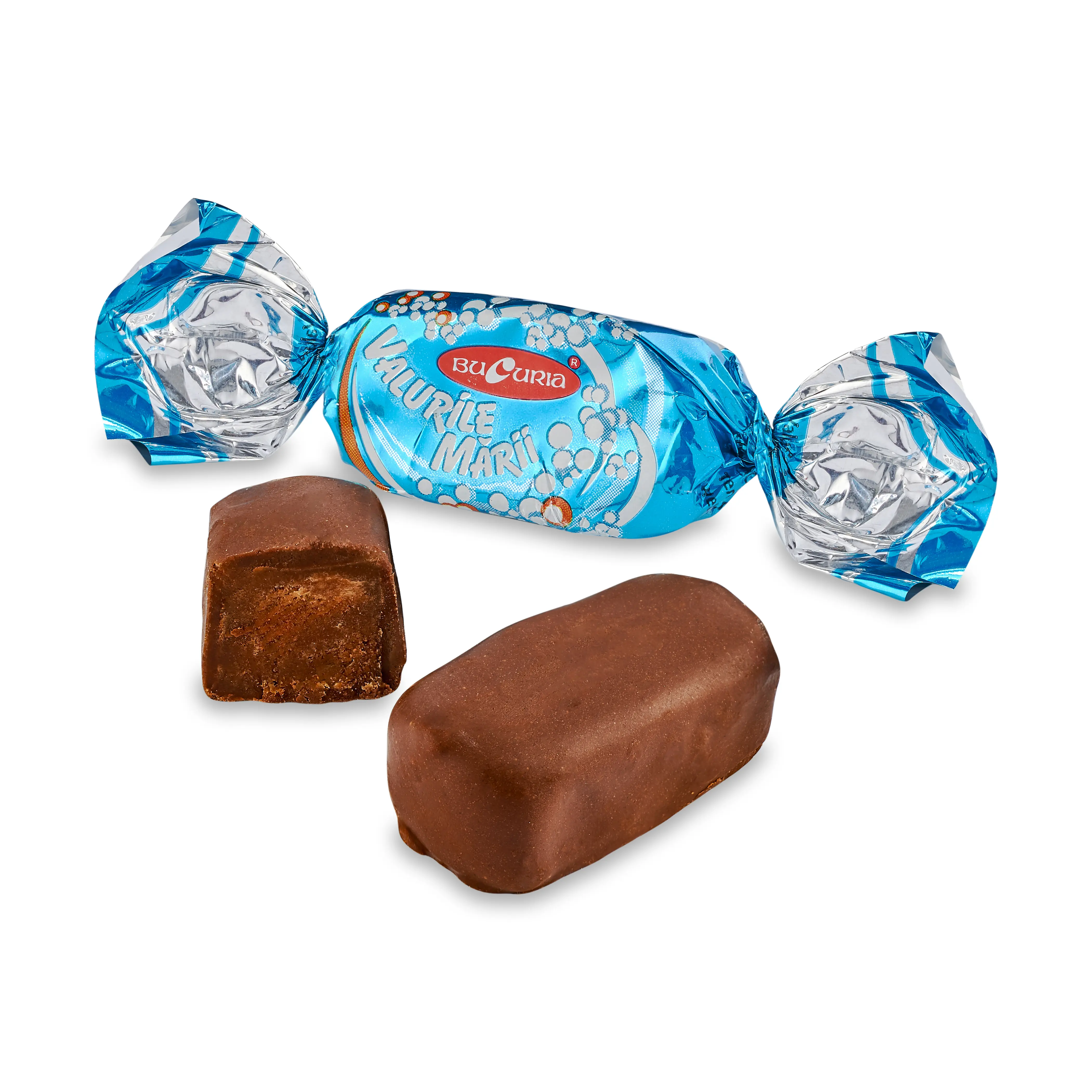 Cахар,кондитерская глазурь – 21% (сахар, растительный жир (пальмовый), какао порошок с пониженным содержанием жира, эмульгатор соевый лецитин, ароматизатор „ванилин”), патока, молоко сгущённое, какао порошок с пониженным содержанием жира, жир растительный (пальмовый, подсолнечный), спирт этиловый ректификованный из пищевого сырья – 0,3%, подкислитель лимонная кислота, ароматизатор натуральный, сухой яичный белок, стабилизатор инвертаза. Какао 6,0%